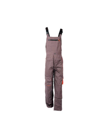 Φόρμα τιράντα με εκτεταμένη προστασία στα πλαϊνά, ελαστικούς ιμάντες και πόρπες με εύκολο κλείσιμο. Με επιπλέον ενισχύσεις και διχρωμίες στις τσέπες και ελαστική ζώνη στη μέση. Μια τσέπη στο στήθος με φερμουάρ, δυο μπροστινές τσέπες και δυο τσέπες στα πλαϊνά εκ των οποίων η μια με καπάκι. Σύνθεση από 65% πολυεστέρα και 35% βαμβάκι.
