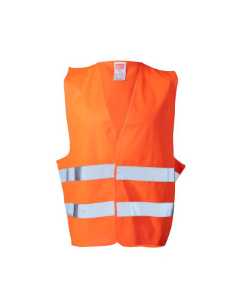 Γιλέκο υψηλής ορατότητας, με ανακλαστικές ταινίες, Class 2 και μπροστινό κλείσιμο με velcro. Σύνθεση από 100% νάιλον.