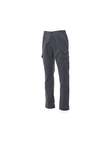 Παντελόνι με πολλαπλές τσέπες, με ελαστική μέση και θηλιές ζώνης, κλείσιμο με φερμουάρ και κουμπί. Τριπλές ραφές στον καβάλο και το εσωτερικό του ποδιού, δυο κλασικές μπροστινές τσέπες, μια αριστερή τσέπη με καπάκι και μια με φερμουάρ και καπάκι, μια δεξιά τσέπη με διαχωριστικό και κλείσιμο με καπάκι για μετροταινία, δυο πίσω τσέπες, μια με κλείσιμο με καπάκι. Σύνθεση από 65% πολυεστέρα και 35% βαμβάκι.