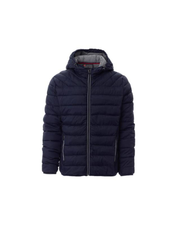 Ανδρικό ελαφρύ τζάκετ με κουκούλα, πλαστικό φερμουάρ 5 mm, μανσέτες και στρίφωμα με λεπτό περίγραμμα και δυο εξωτερικές τσέπες. Επένδυση: επένδυση από πολυεστέρα με εφέ πούπουλου και δυο τσέπες. Σύνθεση από 100% νάιλον.