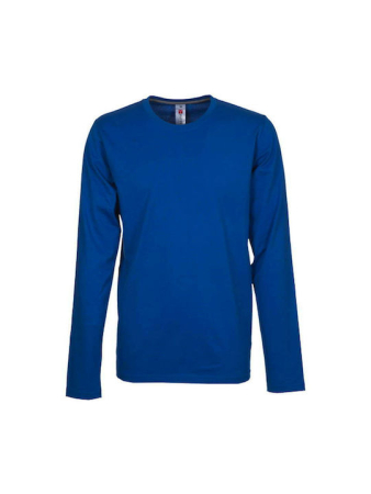 Ανδρικό μακρυμάνικο μπλουζάκι με λαιμόκοψη, γιακά με ραβδώσεις και ταινία spandex 1.5 cm με εξαιρετική ραφή στο μπροστινό μέρος. Eνισχυτική ταινία στους ώμους με χρωματική αντίθεση ορατή στο εσωτερικό του γιακά, ελαστικές και πλευρικές ραφές. Σύνθεση από 100% βαμβάκι.