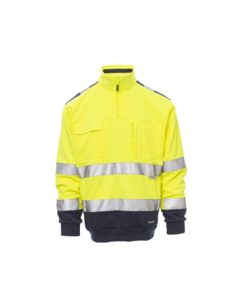 Ανδρικό φούτερ υψηλής ορατότητας με ταινίες 3Μ, μισό φερμουάρ από νάιλον και ελαστικές μανσέτες και στρίφωμα με ραβδώσεις. Δυο μπροστινές τσέπες με κρυφό φερμουάρ, μια τσέπη στο στήθος με καπάκι και αποσπώμενη, αναδιπλούμενη θήκη για κάρτα και μια τσέπη με φερμουάρ και ενισχυμένες ραφές.