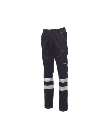 Παντελόνι unisex για όλες τις εποχές με ανακλαστικές ταινίες κατηγορίας 1, ελαστικό στα πλαϊνά και με θηλιές ζώνης στη μέση. Κλείσιμο με φερμουάρ και πλαστικό κουμπί, δυο κλασικές μπροστινές τσέπες, μια πλαϊνή τσέπη με καπάκι, μια τσέπη για μετροταινία και δυο πίσω τσέπες, εκ των οποίων μια με καπάκι και μια ανοιχτή με velcro. Ένθετα και ραφές με αντίθεση, ανακλαστικές ταινίες στην πίσω τσέπη και τριπλές ραφές. Σύνθεση από 100% βαμβάκι.