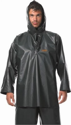 Σακάκι με κουκούλα, εσςωτερικό κορδόνι, κλείσιμο με πλαστικό φερμουρ, Velcro κλείσιμο στο λαιμό, λάστιχο στο μανίκι (extra). Χρώμα: πράσινο σκούρο. Ύφασμα: PVC/Polyester. Βάρος: 430 gr/m2.