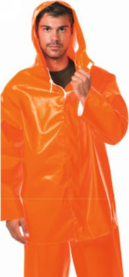 Σακάκι με κουκούλα, εσωτερικό κορδόνι, κλέισιμο με πλαστικό φερμουάρ, Velcro κλείσιμο στο λαιμό, στο μανίκι (extra). Είναι φθορίζον πορτοκαλί. Ύφασμα: PVC/Polyester/Βαμβάκι 480 gr/m2 με βαμβακερή εσωτερική επένδυση για απορρόφηση του ιδρώτα.