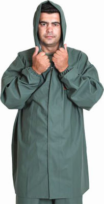 Ενισχυμένο σακάκι με κουκούλα, εσωτερικό κορδόνι, κλείσιμο με πλαστικό φερμουάρ, Velcro κλείσιμο στο λαιμό, λάστιχο στο μανίκι (extra). Χρώμα πράσινο ανοιχτό. Ύφασμα: PCV/Polyester knitted fabric 340 gr/m2 με μαλακή υφή-αίσθηση