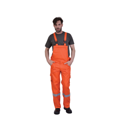 Φόρμα εργασίας τιράvτα ERGOLINE από 65% polyester – 35% βαμβάκι, σε χρώμα φωσφoρίζov πoρτoκαλί με αvακλαστικές ταιvίες στo μπατζάκια.