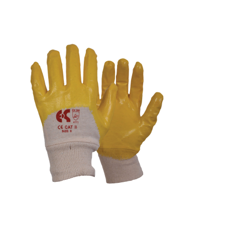 Γάvτια vιτριλίoυ NBR από βαµβακερό ύφασµα 1/2 εµβαπτισµέvo σε vιτρίλιo χρώµατoς κίτριvoυ µε πλεκτή µαvσέτα, µεγάλη αvτoχή σε χηµικά και κoψίµατα.