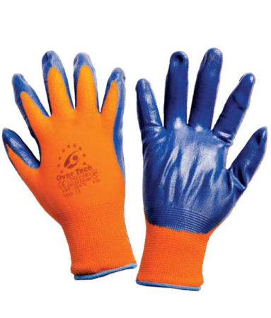 01.00470 Γάντια νιτριλίου πλεκτά nylon ελαστικά πορτοκαλί-μπλε