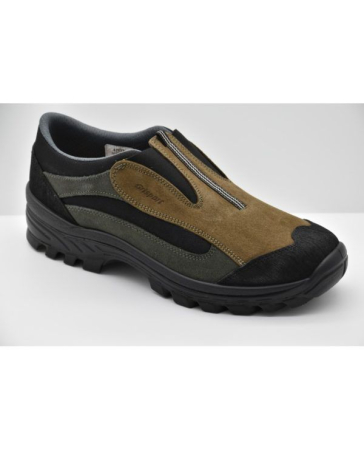 Αδιάβροχη μεμβράνη Gritex, κατασκευασμένο από υψηλής τεχνολογίας διαπνέοντα υλικά, με δέρμα καστόρ, με εργονομική σχεδίαση, πολύ μαλακή σόλα πολυοθρεθάνης με πολύ χαμηλό ειδικό βάρος και μικρο-αερόφουσκες που απορροφούν τους κραδασμούς, αντιολισθητική ακόμα και σε βρεγμένα πλακάκια, λάδια, κτλ., Πολύ μαλακό και ελαφρύ μποτάκι πεζοπορίας. Κατάλληλο για όχι πολύ πετρώδη εδάφη. Παντοφλέ χωρίς κορδόνι.