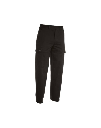 Ανδρικό χειμερινό παντελόνι, ελαστικό στο πλάι και με θηλιές ζώνης στη μέση. Κλείσιμο με φερμουάρ και μεταλλικό κουμπί, δυο μπροστινές τσέπες, δυο πλαϊνές τσέπες με καπάκι και κουμπί, μια αριστερή τσέπη με φερμουάρ, μια αναδιπλούμενη τσέπη μετροταινίας στα δεξιά και δυο πίσω τσέπες με σχισμή με κουμπί και κουμπότρυπα. Σύνθεση από 100% βαμβάκι.