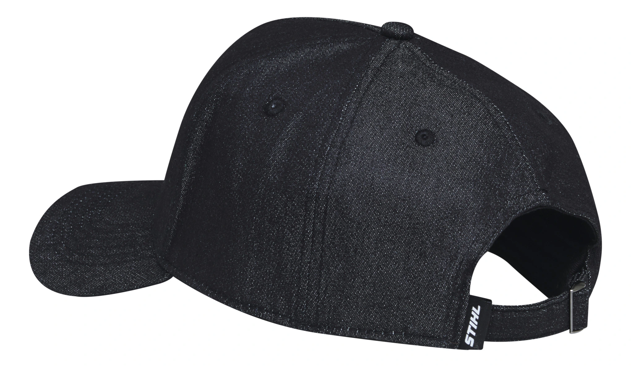 Άνετο καπελάκι με πέντε πάνελ από μαύρο denim, 100 % βαμβάκι. Κεντητό αλυσοπρίονο στο μπροστινό μέρος, ελαστικό λουρί ρύθμισης ή, με λίγα λόγια: Σας κάνει, σας πάει και σας δροσίζει.