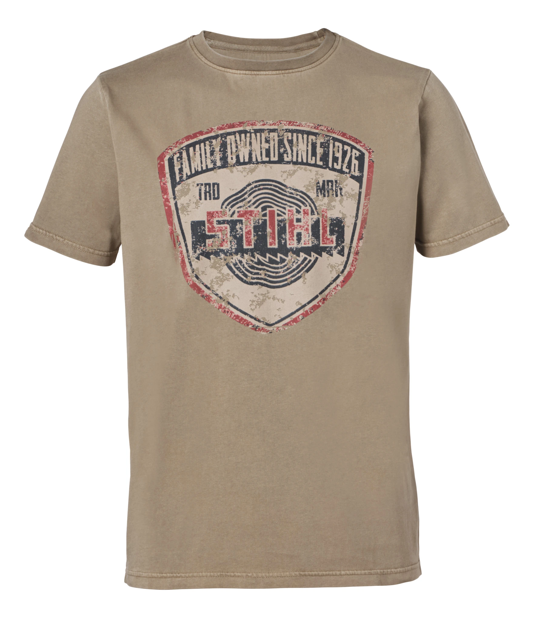 Τ-Shirt "FAMILY OWNED" , στο χρώμα της άμμου, από 100% βαμβάκι.