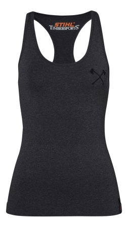 Χρώμα γκρι, 52 % πολυαμίδιο, 42 % πολυεστέρας, 6 % ελαστάνη, στενό πλεκτό τοπ χωρίς ραφές, κεντητό λογότυπο «STIHL TIMBERSPORTS®» στην πλάτη και κεντητά τσεκούρια ψηλά στον θώρακα, ετικέτα looplabel «STIHL TIMBERSPORTS®» στη ραφή.