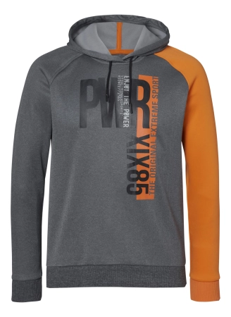 Χρώμα γκρι και πορτοκαλί/μπλέ, 100 % πολυεστέρας, αναπνέει και στεγνώνει γρήγορα. Με στάμπα «PWR» στο μπροστινό μέρος, εσωτερικό ρέλι λαιμόκοψης σε πορτοκαλί χρώμα, μαύρη στάμπα «STIHL TIMBERSPORTS®»