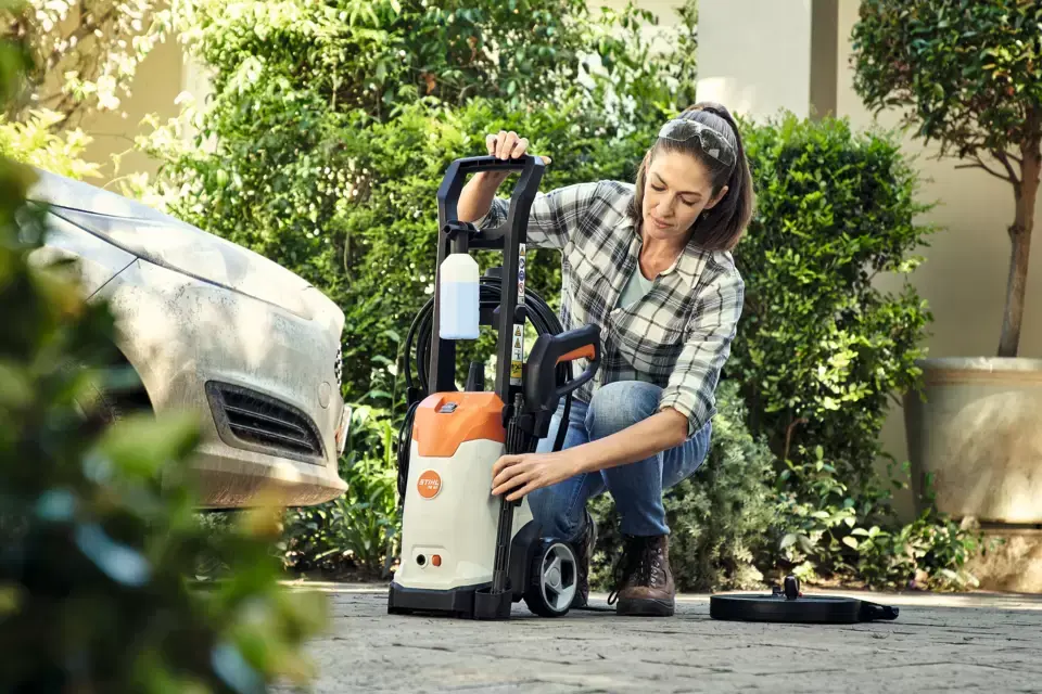 Ελαφρύ και compact πλυστικό υψηλής πίεσης 100 bar με βασικό εξοπλισμό. Κεφαλή αντλίας από αλουμίνιο, ενσωματωμένοι τροχοί, σετ ψεκασμού απορρυπαντικών με φιάλη, μπεκ περιστρεφόμενης δέσμης και μπεκ επίπεδης δέσμης με ρυθμιστή πίεσης, αντιστρεπτικός ταχυσύνδεσμος στο πιστόλι,θέση για το σύστημα εκτόξευσης στα διαλείμματα εργασίας, σωλήνας υψηλής πίεσης 6 m, λαβή μεταφοράς.