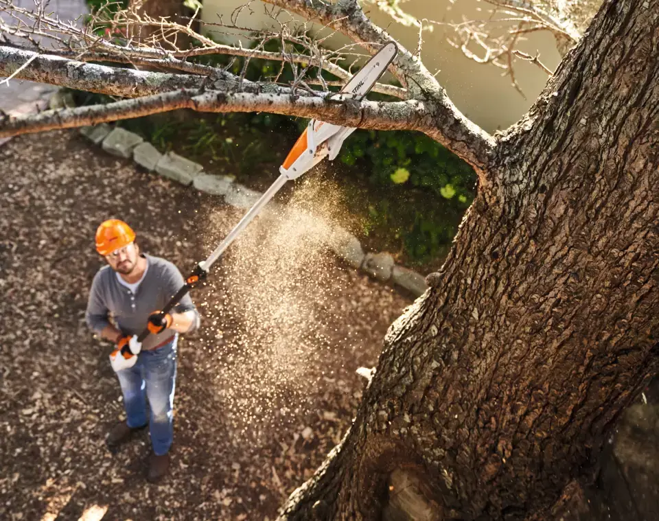 κοπής για εργασίες περιποίησης δέντρων κάθε είδους. Αλυσίδα 1/4“- PM3 και πλευρικός τεντωτήρας αλυσίδας. Με γάντζο για εύκολη απομάκρυνση του κομμένου υλικού από το δέντρο, ημιδιαφανές δοχείο λαδιού, εργονομική μονάδα χειρισμού και διαιρούμενο σωλήνα για εύκολη μεταφορά και εξοικονόμηση χώρου κατά τη φύλαξη. Συνολικό μήκος 280 cm.