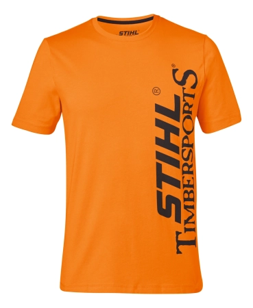 Πορτοκαλί t-shirt, από 100% βαμβάκι, στρογγυλή λαιμόκοψη, και τύπωμα"STIHL TIMBERSPORTS®" μπροστά.