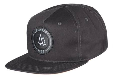 Σκούρο γκρι, από 100% βαμβάκι, εσωτερικά πορτοκαλί, ίσιο χείλος, σήμα "CHAINSAWS", ρυθμιζόμενο μέγεθος. Ενα μέγεθος ταιριάζει σε όλους.