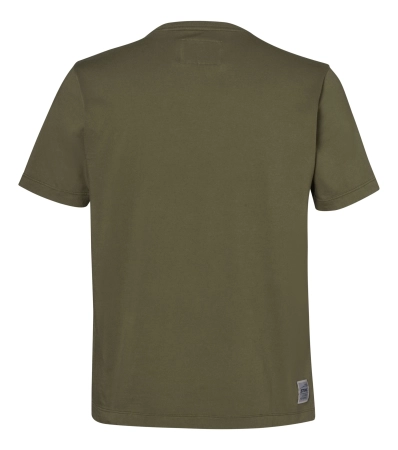 Σε χρώμα λαδί & γκρι, 100 % βαμβάκι, βαμμένο με χρωστικές, στάμπα «GREAT OUTDOORS» στην μπροστινή πλευρά, εσωτερικές ραφές σε αντίθετο πορτοκαλί χρώμα.