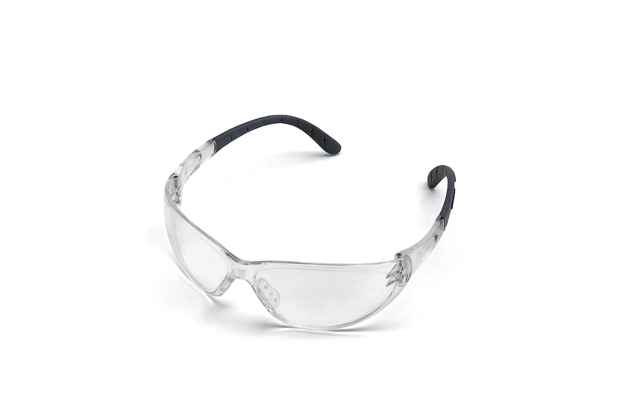 Άχρωμα προστατευτικά γυαλιά. Φακοί που δεν θαμπώνουν εσωτερικά, δεν χαράσσονται εξωτερικά και είναι εφοδιασμένοι με πλαϊνά προστατευτικά. Επενδυμένα άκρα βραχιόνων. Με 100% προστασία από την υπεριώδη ακτινοβολία. Ικανοποιεί το πρότυπο EN 166. Βάρος περίπου 26,0g.