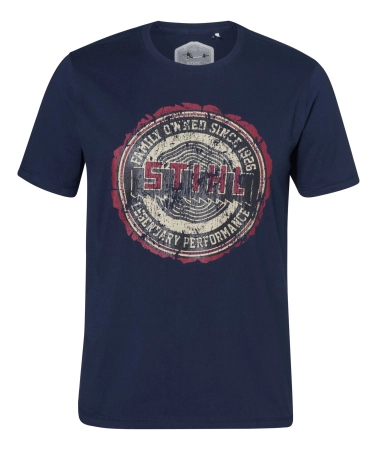 Χρώμα λαδί & μπλε, 100 % βαμβάκι, ελαστικός λαιμός, στάμπα με παλαιό λογότυπο «STIHL» στην μπροστινή πλευρά σε used-look, ετικέτα με λογότυπο «STIHL» στη ραφή του δεξιού μανικιού.