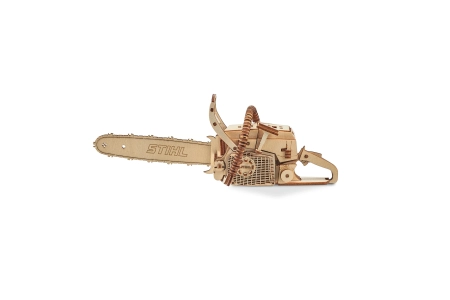 Φτιάξε το δικό σου αλυσοπρίονο! Τρισδιάστατο ξύλινο παζλ αλυσοπρίονο, αποτελούμενο από 4 τάβλες 21 x 34 x 0,3 cm από ξύλο με πιστοποίηση FSC.