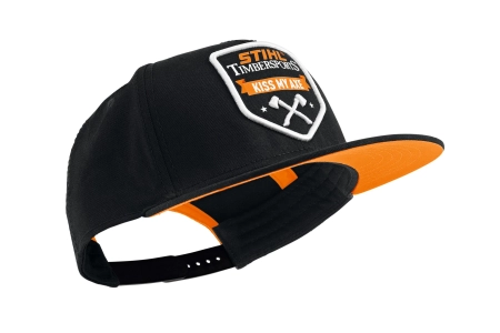 Σε μαύρο χρώμα. 100 % βαμβάκι, ρυθμιζόμενο, με επίραμμα «Kiss my Axe».