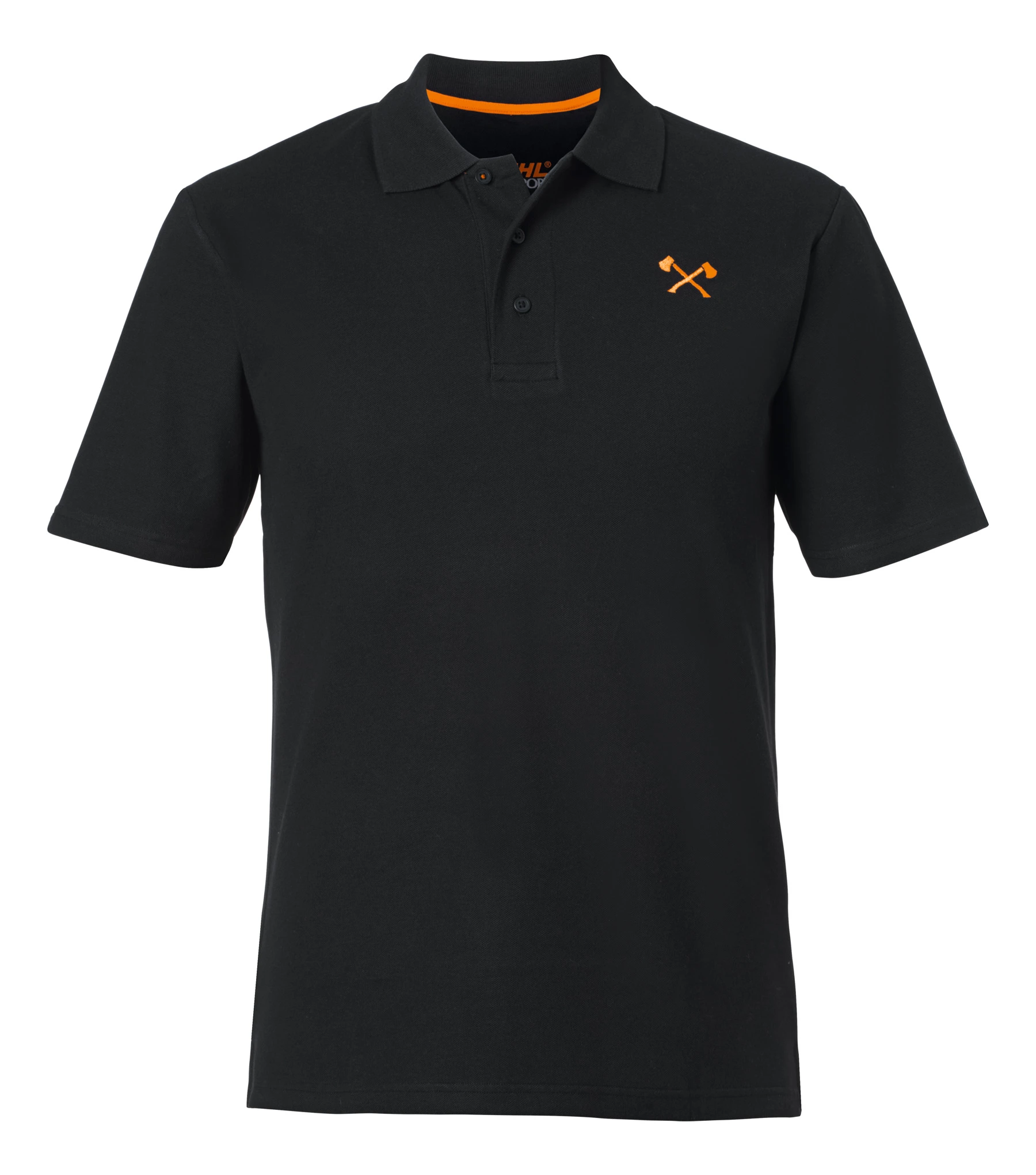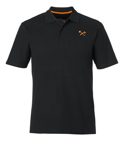 Μαύρη μπλούζα Polo, από 100% βαμβάκι, με κεντημένα τσεκούρια στο στήθος..