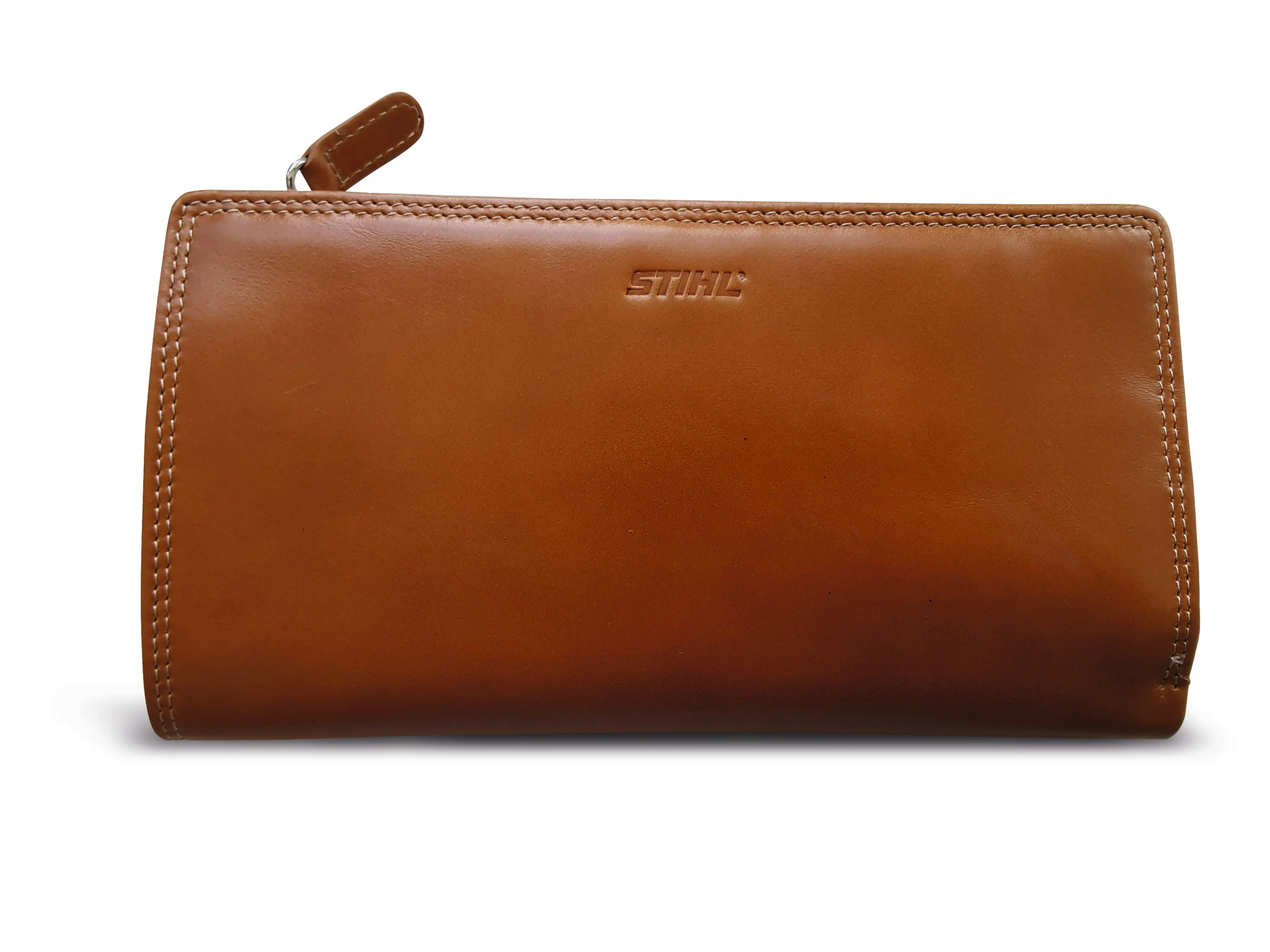 Πορτοφόλι γυναικείο, χρώμα κονιάκ Βόειο δέρμα, περίπου 16,5 x 9,5 cm.