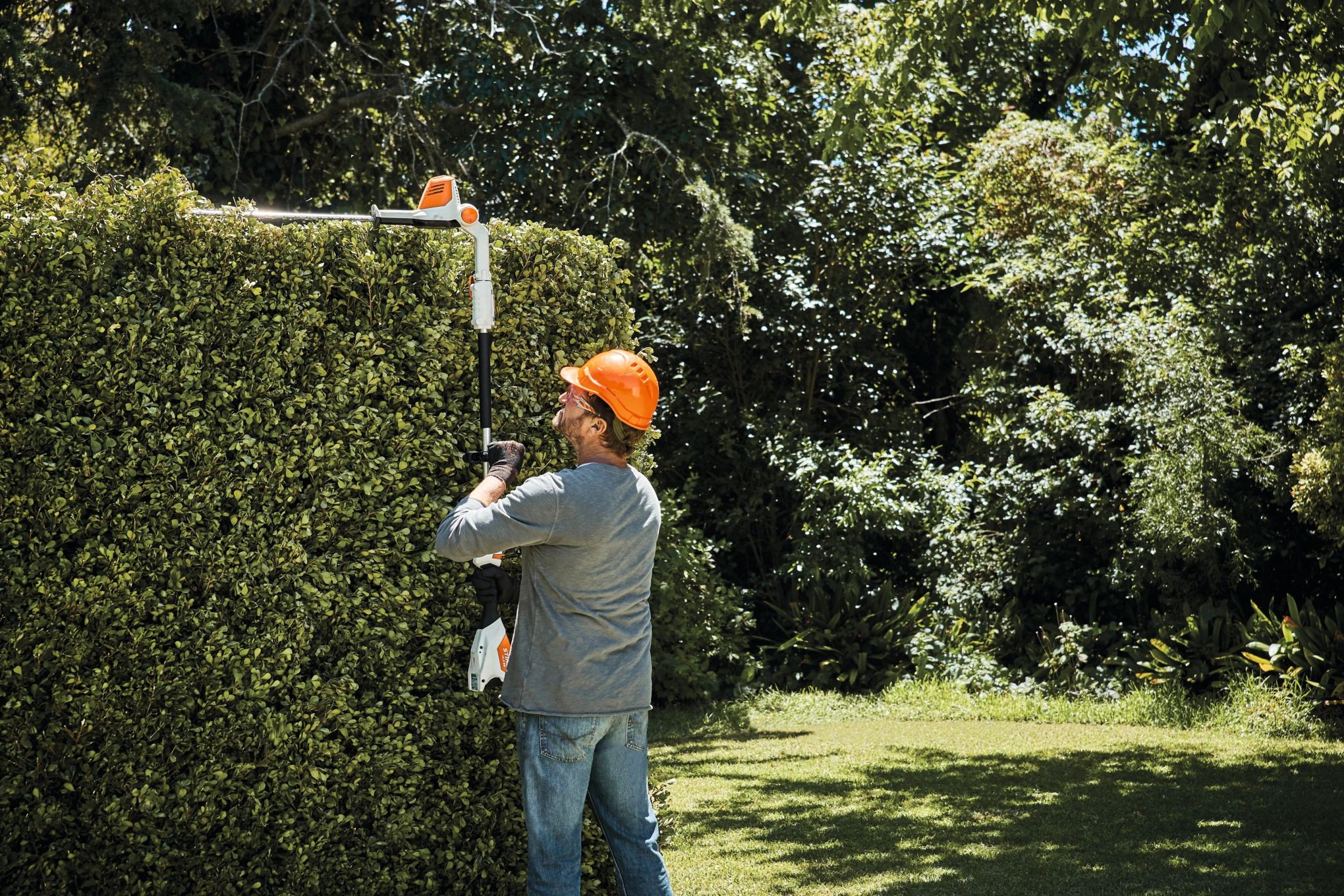 υψηλών φραχτών και θάμνων στον κήπο του σπιτιού. Μαχαίρια μονόπλευρης κοπής με δόντια σε σχήμα σταγόνας, γωνία μαχαιριών ρυθμιζόμενη από -45° έως + 90°, διαιρούμενος σωλήνας για εύκολη μεταφορά. Μήκος μεταφοράς 115 cm, συνολικό μήκος 210 cm, βάρος 3,8 kg.