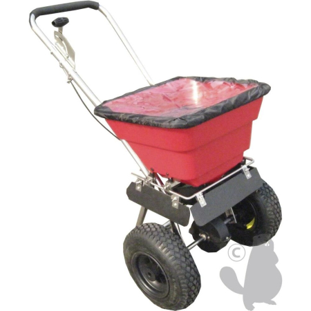 Αλατοδιανομέας συρόμενος από το χλοοκοπτικό τρακτέρ, χωρητικότητα 36 κιλά, τροχοί 12″. Πλαίσιο από ανοξείδωτο ατσάλι. Ρυθμιζόμενη κατεύθυνση διασποράς. Με κάλυμμα και σχάρα για να σπάει το αλάτι.
