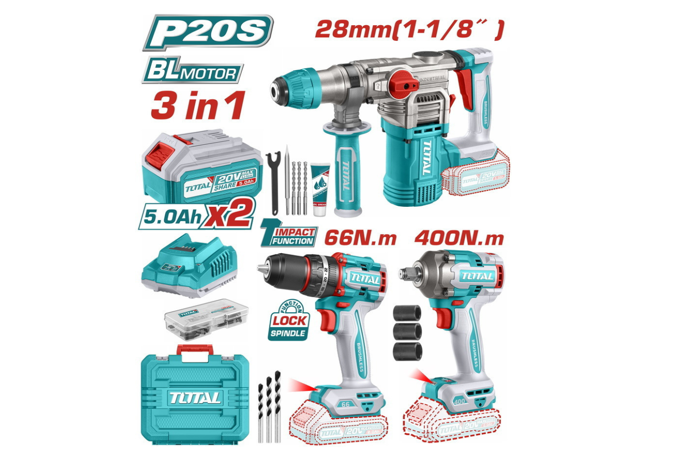 TOTAL ΕΠΑΓΓ. ΣΕΤ ΔΡΑΠ/ΒΙΔΟ ΚΡΟΥΣΤ.+ΠΝΕΥΜΑΤΙΚΟ ΠΙΣΤ.+ ΜΠΟΥΛΟΝΟΚΛΕΙΔΟ ΜΠΑΤ. Li-ion 20V