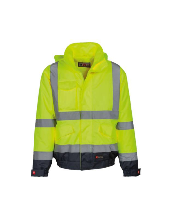 Δίχρωμο, ελαφρύ τζάκετ υψηλής ορατότητας, με ανακλαστισκές ταινίες, πλήρες φερμουάρ με καπάκι, αναδιπλούμενη κουκούλα, ελαστική μέση και μανσέτες, δυο μεγάλες μπροστινές τσέπες με καπάκι και velcro, θήκη για κινητό και δακτύλιος στήριξης για ταυτότητα. Με επένδυση, εσωτερική τσέπη με velcro, θερμοκολλητικές ραφές. Σύνθεση από 100% πολυεστέρα επικαλυμμένη με πολυουρεθάνη.